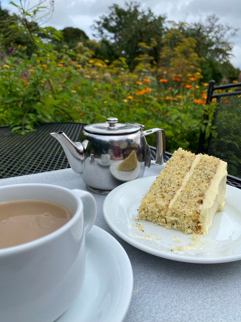 Arriving after a morning hike and lunch, I was keen to start with some tea and cake in the garden before venturing into the house. A delicious slice of orange and poppyseed cake later, I wandered around the beautiful garden beds filled with bright flowers and fruiting trees on my way to the house.