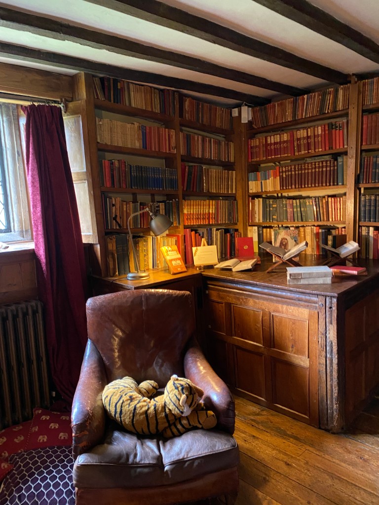 After the entrance hall, there is a small mezzanine level that was Caroline’s office and is now filled with various editions of The Jungle Book and related memorabilia. It is exactly the kind of reading room I would love in my own house; lined with dark timber book shelves overflowing with books, good natural lighting, and a low ceiling with exposed beams giving a warm and cosy feel.